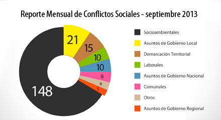 El Reporte de Conflictos Sociales N°115 da cuenta de que en septiembre se resolvieron tres conflictos; dos laborales y uno por asuntos de gobierno nacional. El primero, de carácter laboral se resolvió en el distrito de Canaria, provincia de Víctor Fajardo – Ayacucho, donde los trabajadores de la Sociedad Minera Catalina Huanca exigían un monto adicional a las utilidades generadas en el 2012. Actualmente, las relaciones laborales han sido restablecidas y las labores se desarrollan normalmente, tras la suscripción de un acta de acuerdos.