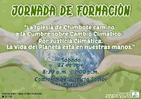 La jornada “La Iglesia de Chimbote camino a la Cumbre sobre Cambio Climático: por Justicia Climática. La Vida del Planeta está en nuestras manos estará a cargo del equipo de la Comisión Episcopal de Acción Social (CEAS) – Lima y se realizará el sábado 22 de noviembre, de 8.30 a.m. a 3 p.m., en el auditorio de la Comisión de Justicia Social (Av. Meiggs 570).}