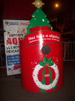 El domingo 14 de diciembre se encendió el primer árbol navideño ecológico, hecho en base de más de 50 mil botellas recicladas con una altura de 16 metros, y símbolo de la campaña “Haz feliz a alguien”, promovida por Coca-Cola.