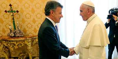 «Lo que pueda hacer yo personalmente o la Iglesia, cuente con nosotros», dijo el Papa Francisco al presidente colombiano Juan Manuel Santos, para una posible mediación en el proceso de paz con la guerrilla de las Fuerzas Armadas Revolucionarias de Colombia (Farc). El ofrecimiento se realizó durante una audiencia privada realizada hoy en El Vaticano, según relató Santos a los medios.