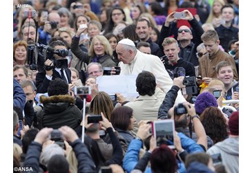 En su encuentro semanal con los peregrinos del mundo, el Papa les deseó que su visita a Roma se cumpla con el espíritu del verdadero peregrino, que,  sabiendo que aún no posee el Bien más grande, se pone en camino para buscarlo. Y que no olviden que Dios se deja encontrar por cuantos lo anhelan encontrar. El Santo Padre reiteró asimismo su invitación a las familias para que hagan siempre de los umbrales de sus hogares un signo de la Puerta de la Misericordia que Jesús abre a todos y reiteró que una Iglesia inhospitalaria y una familia encerrada en sí misma mortifican el Evangelio y hacen que el mundo se vuelva árido.
