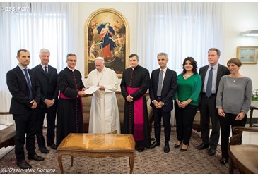 Por la tarde, el Papa mantuvo un encuentro con el Prefecto de la Secretaria para la Comunicación, mons. Dario Edoardo Viganò y con mons. Lucio Adrián Ruiz, Secretario del nuevo dicasterio, junto al Consejo para la Comunicación. Durante el coloquio, caracterizado por la gran cordialidad, el Pontífice entregó el Estatuto de la Secretaria para la Comunicación, que regirá desde el 1° de octubre.