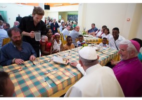 «Les agradezco tanto, en nombre de toda la Iglesia, por lo que hacen por los últimos. Los aliento a proseguir en esta misión, que hace sentir a la Iglesia como verdadera compañera de viaje, cercana al corazón y a las esperanzas de os hombres y de las mujeres de este mundo. Sigan llevando el mensaje del Evangelio de la alegría, sobre todo a los marginados, pero también a los que tienen el poder de cambiar las cosas, porque es posible cambiar. La pobreza, el hambre, las enfermedades, la opresión no son una fatalidad y no pueden representar situaciones permanentes. Con fiando en el poder del Evangelio, podemos contribuir verdaderamente a cambiar las cosas o al menos a mejorarlas. Podemos reafirmar la dignidad de cuantos esperan una señal de nuestro amor y proteger y construir juntos nuestra casa común.