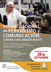 La Conferencia Episcopal Peruana (CEP), a través de la Comisión Episcopal de Comunicación, convoca a periodistas y comunicadores a participar del concurso “Premio Nacional de Periodismo y Comunicación Social Cardenal Juan Landázuri Ricketts 2018”.