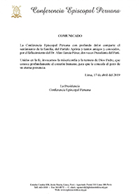 Comunicado de la Conferencia Episcopal Peruana sobre el fallecimiento del Dr. Alan García Pérez