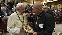 En este sentido, se recomienda una «defensa inflexible» de los pueblos indígenas. El derecho a su cultura, a su teología y a su religión es una riqueza que debe salvaguardarse en interés de toda la humanidad.  Por último, se destacó el problema de la alimentación. El Amazonas con sus aguas beneficiosas podría ayudar a reducir el hambre en el mundo. De hecho, el 26% del agua del planeta proviene de esta región. De ahí el llamamiento a fomentar proyectos sostenibles. También durante la duodécima Congregación General, en la segunda parte dedicada a las intervenciones libres, el Papa tomó la palabra. Finalmente, los Padres sinodales pudieron ver una película sobre la iniciativa del barco hospitalario «Papa Francisco», inaugurado el pasado mes de agosto y diseñado con el objetivo de llevar el Evangelio y la asistencia sanitaria a los cientos de miles de habitantes del estado brasileño de Pará que viven a lo largo del río Amazonas y a los que sólo se puede acceder por vía fluvial.