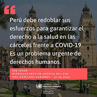 “El Estado peruano debe redoblar sus esfuerzos para garantizar el derecho a la salud al interior de las cárceles. Para ello, junto con perfeccionar los protocolos de salud e higiene, se debe reducir el hacinamiento, incluyendo a través de liberación de detenidos vulnerables”, dijo el Representante.