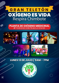 A través de una teletón virtual, la Diócesis de Chimbote busca recaudar 1 millón 200 mil soles para la instalación de una planta productora de oxígeno medicinal a favor de los pacientes con COVID-19 en Chimbote, Nuevo Chimbote y demás distritos de la zona costa de Áncash.